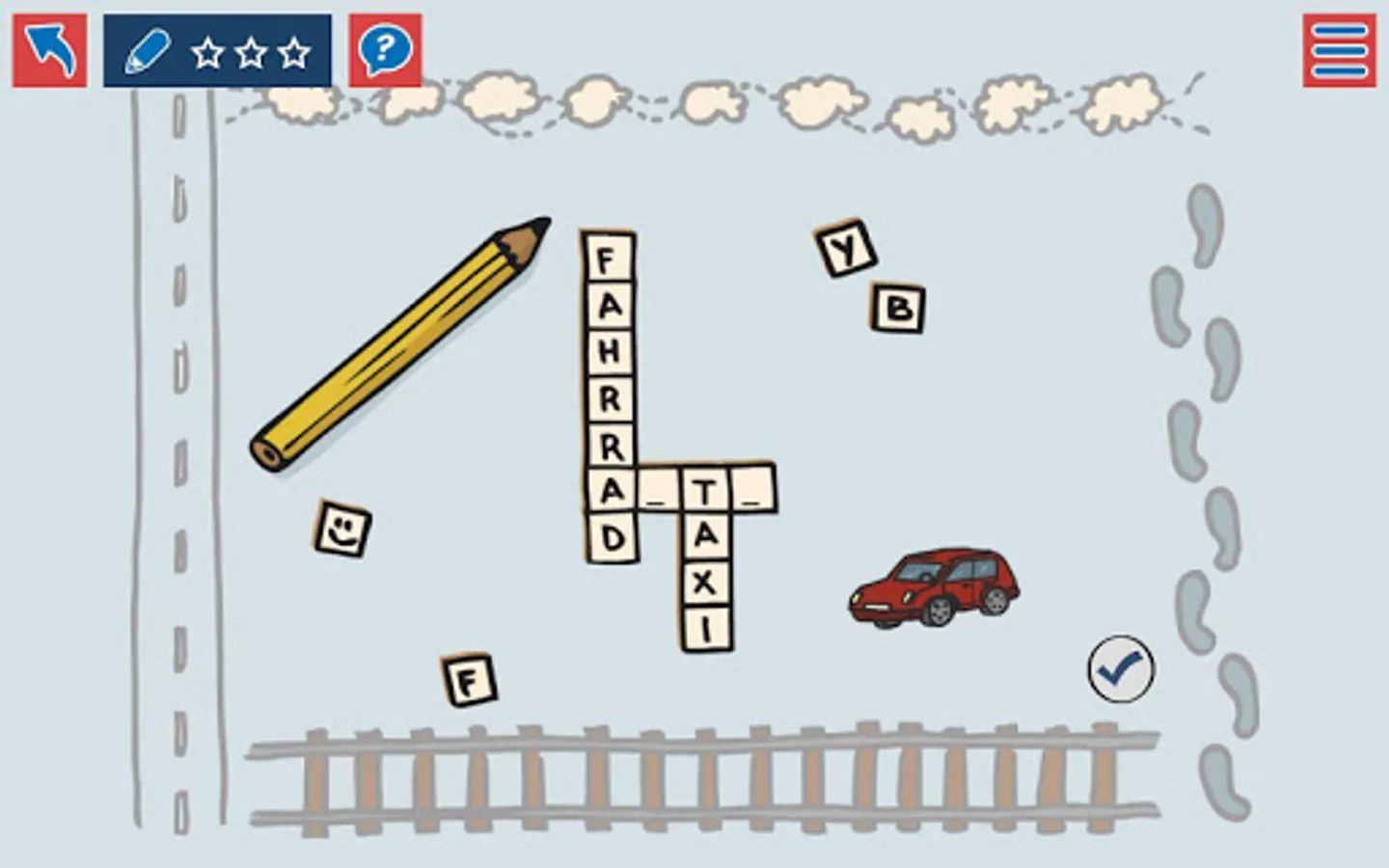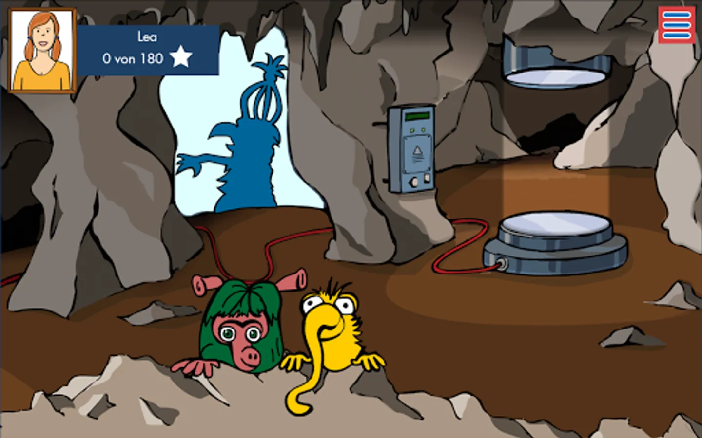 Welcome to Mumbros and Zinell's mysterious cave world! Planet Schule's interactive educational game allows children of primary school age to learn German in a playful way and to expand their language skills at their own pace. The game contains two locations with nine exercises each, training basic German idioms and grammar. Each exercise is divided into four parts: learning by playing, listening, reading and writing. The difficulty of the exercises automatically adapts to the learner's knowledge level.