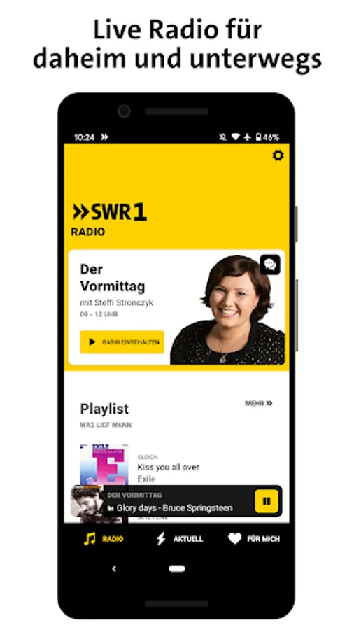 Notice: SWR1 App is free, but listening to audio streams consumes a lot of data which may generate additional costs depending on your mobile contract. Please be sure to use a data flat rate in order to avoid additional costs.