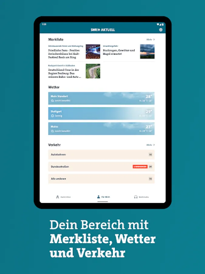 The app is constantly evolving. Your feedback by email to SWR-Aktuell-App@swr.de will help us.