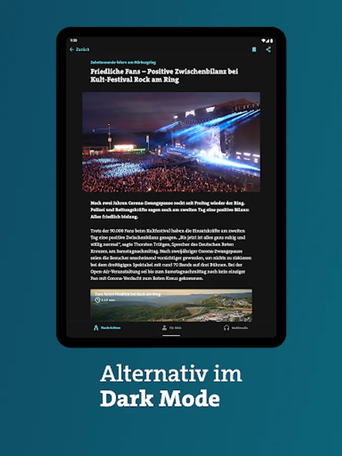 Decide between breaking news, regional news and background reports, analyzes and research - all via push directly to the home screen.