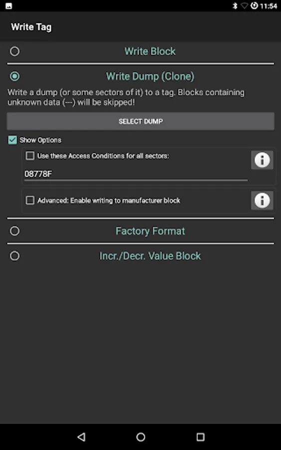 This is a low-level tool for reading, writing and analyzing MIFARE® Classic RFID tags. It is designed for users who have at least basic familiarity with the MIFARE® Classic technology. It provides several features to interact with (and only with) MIFARE® Classic RFID-Tags.