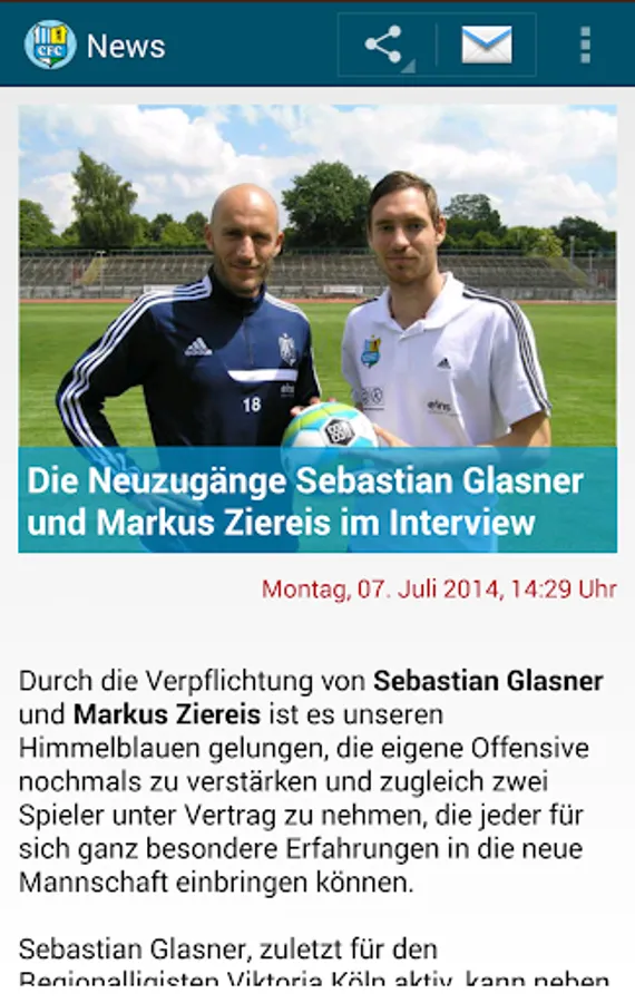 There you expected current news items, seasonal game plan, the league table, match reports and a variety of information about the club. A special highlight of the app is the integrated Live Scores. In addition, you will be informed via push notifications directly about important news of your club.