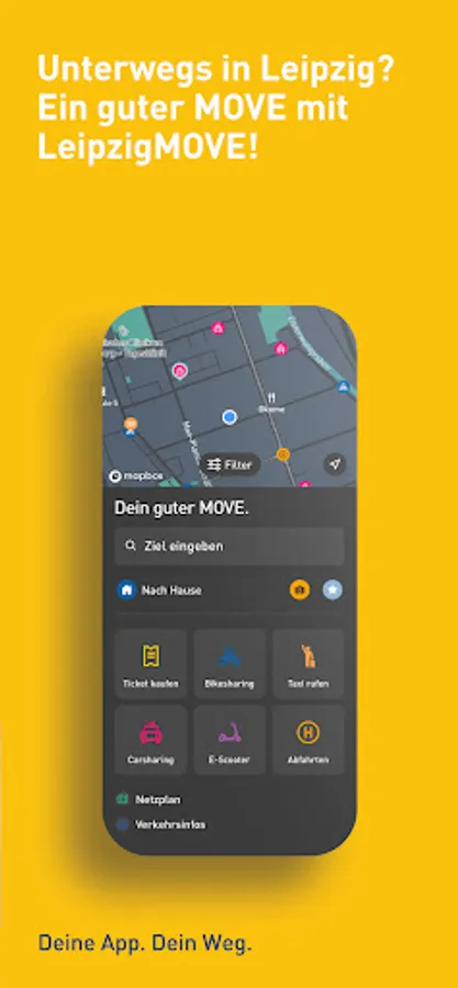 The LeipzigMOVE app always gets you to your destination easily, quickly and reliably - whether by bus, train, car, e-scooter, taxi or bicycle. Download now and try it!