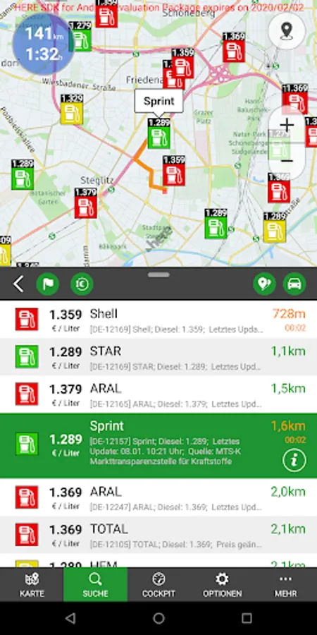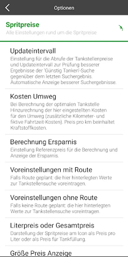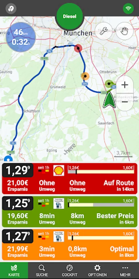 ► absolutely cheapest in the vicinity of the route (max. Detour can be set)