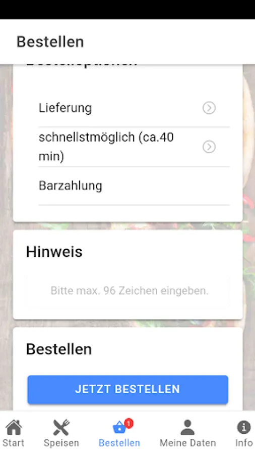 At the beginning, choose your delivery area or whether you want to pick it up yourself in the branch, then you only have to select the food and any ingredients and finally enter your contact details and the desired payment method so that we know where to deliver.