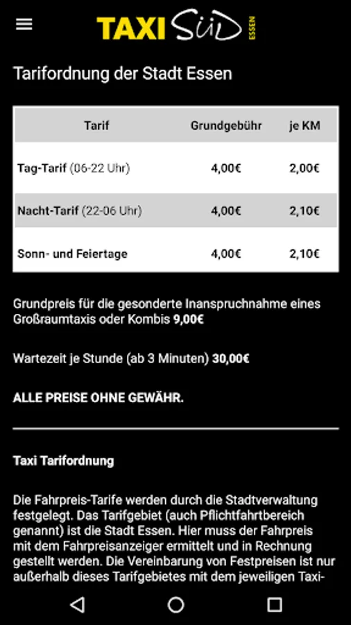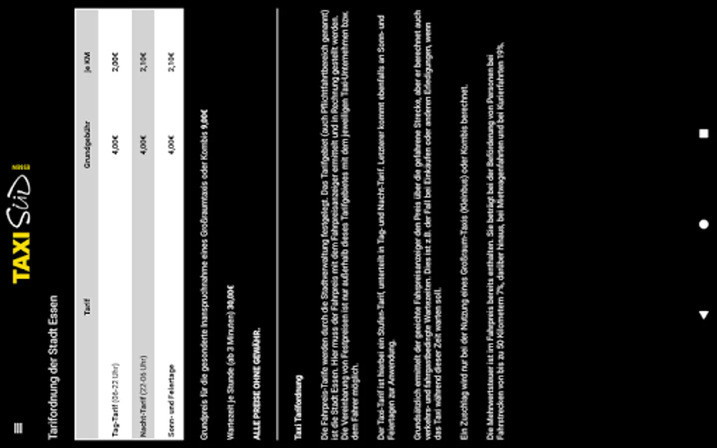 The new taxi South app you are now easily order a taxi from any location in Essen using GPS or through an intelligent local search able.