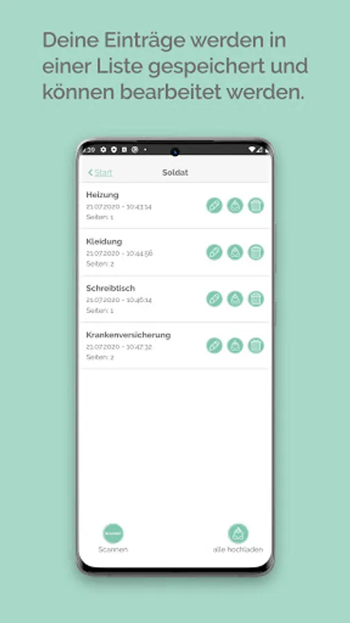 With the Tax ScanApp you can easily and securely scan all tax-relevant information for the online tax return at tax-soldaten.de. Simply scan the document, assign it to category and tax year and upload it. Scan all tax-relevant documents in the course of the year and save yourself the time-consuming sorting at the end of the year.