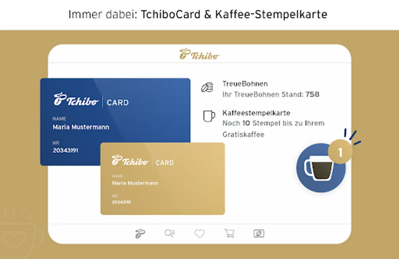 Enjoy benefits with the coffee time card. A virtual coffee stamp is credited to your TchiboCard account for every purchase of a hot drink with a TchiboCard in a Tchibo branch. For 10 collected stamps you get a favorite coffee for free!