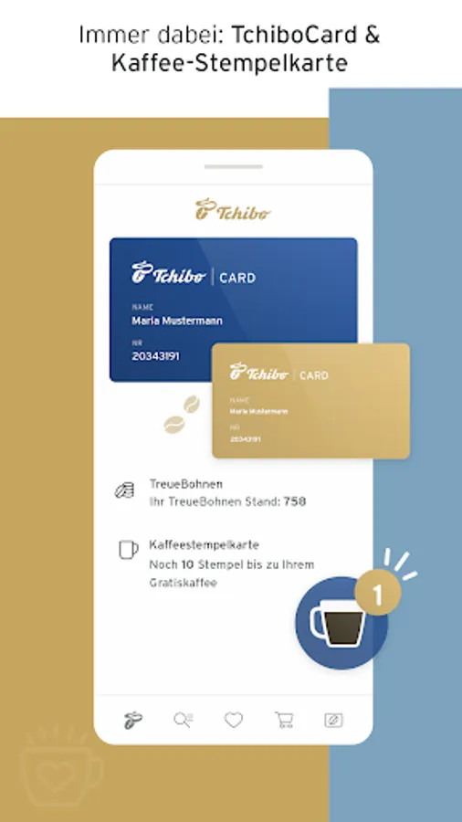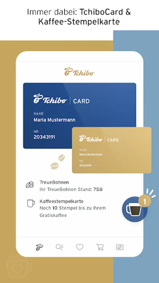 Become a member of the TchiboCard program and always have the digital TchiboCard at hand in the app. As a TchiboCard customer, you collect loyalty beans with every purchase in your Tchibo branch, in the Tchibo app or on tchibo.de, which you can redeem individually. You can also order exclusively one week before all other customers from the new Tchibo theme world and shop selected products at a special price.