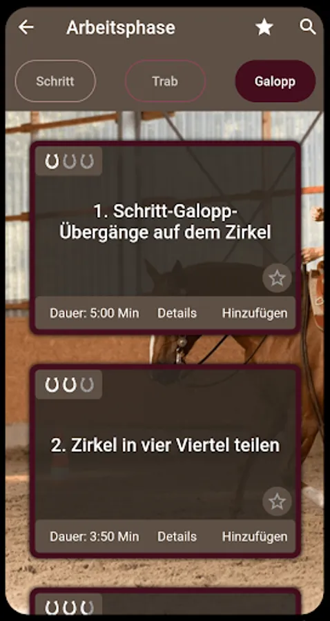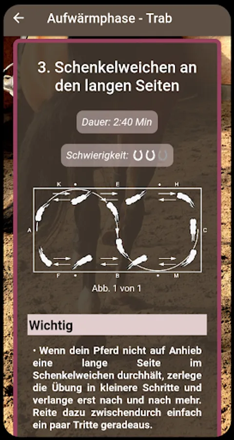 * RidingCoach contains over 50 different exercises for your training, which you can combine individually - from easy to difficult - from easy to intensive.