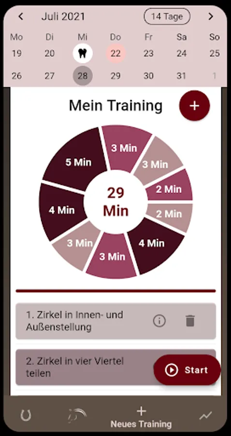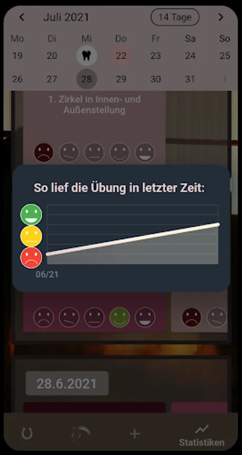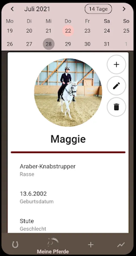 * Storage function for all completed training sessions in the calendar, including evaluation options for clear statistics, so that you can easily observe and document your horse's development over a longer period of time.