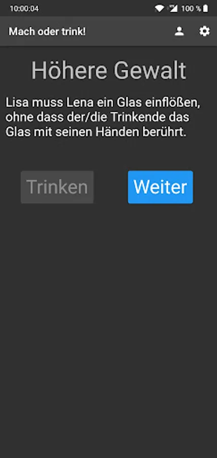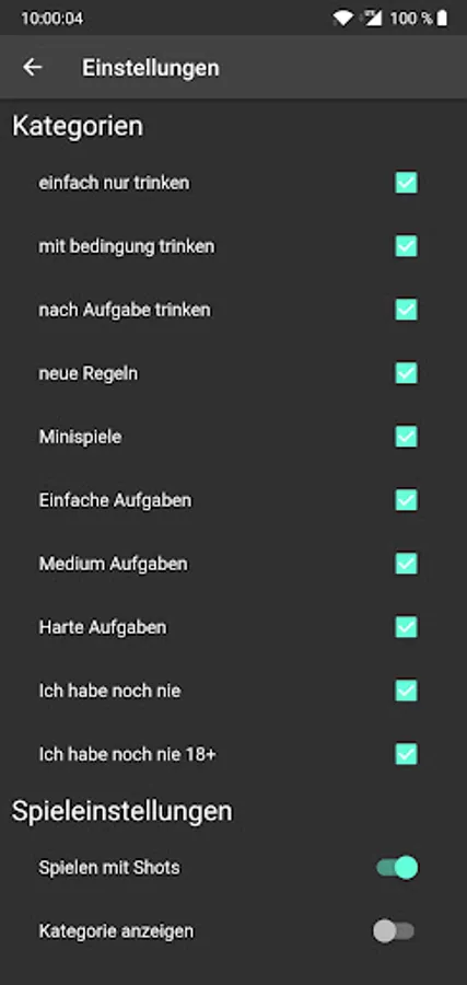 Probably the first drinking game in which you can determine the rules of the game. Each category can be deactivated individually.