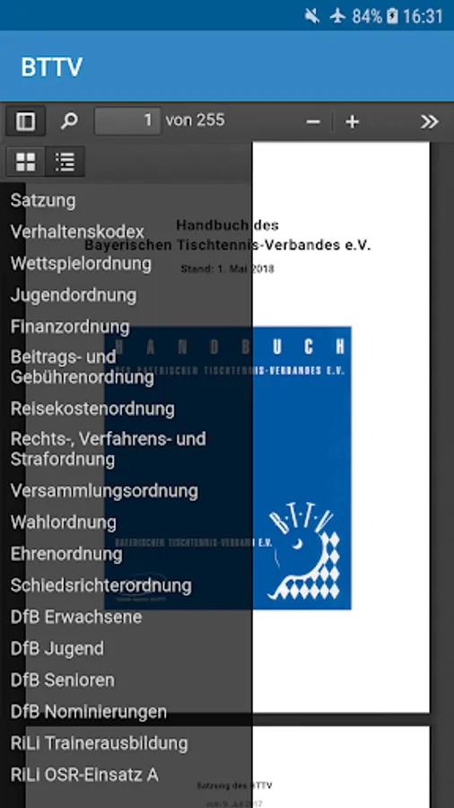 In this app of the Bavarian Table Tennis Association presents its manual with all the provisions that were otherwise distributed as a loose-leaf collection of specialist waiting and referees or can be viewed as PDF files on the Internet. The manual is structured according to other publications, so sites (side line) agree in all representations. The app provides a full text search, so keywords can be found quickly. The upgrade is done rhythm in which the changes are made officially announced the official communications. Through the convenient handling and the accessibility even without connection to the Internet - only for install and update, which is automatically checked each time the app, an internet connection is required - the app is ideal for professional waiting and referees, but also for interested players and team leaders ,