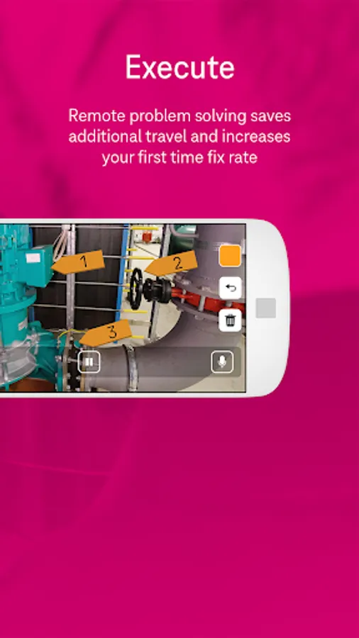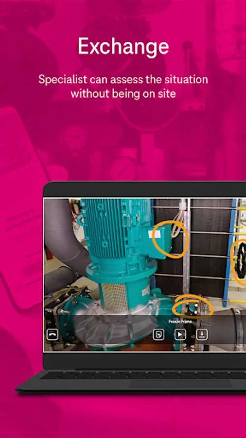 When support is needed, customers and employees can be guided remotely by a specialist with an AR-videocall using the mobile app. The video image of the issue is transmitted to a specialist, who can guide the user with persistent AR cues.