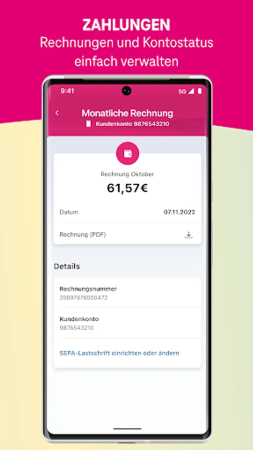 With MeinMagenta you have access to your monthly bills. See at a glance what has been paid or credited and whether your account is currently balanced.