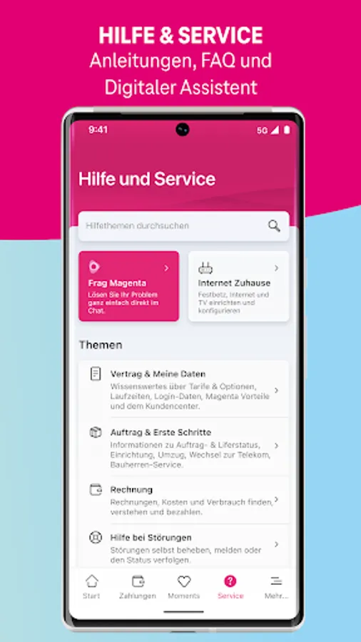 With MeinMagenta you can solve common issues yourself in no time at all. Clear help categories, solution wizards and a convenient full-text search will help you.