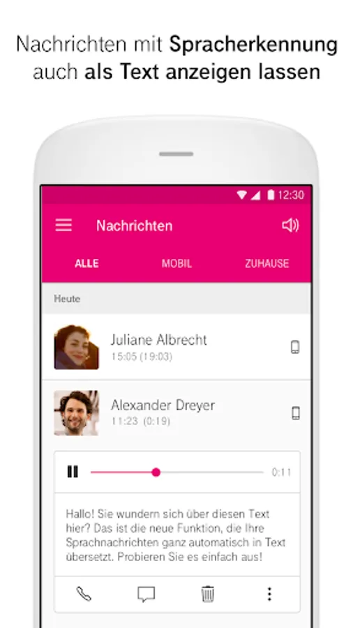 Do you use the voicemail services of Telekom for Mobile or At Home? If you use the new Voicemail app you no longer have to call your Mobilbox or SprachBox in order to hear your voicemails. The messages are pushed straight to your Smartphone and tablet and can be listened to in any order you like.