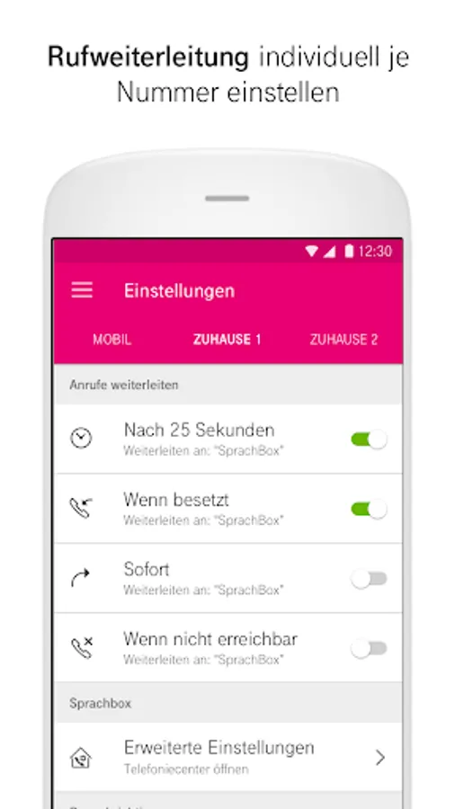 Furthermore, the app enables you to easily manage all your mailbox settings such as greetings and call redirect etc. – for Mobile and At Home.