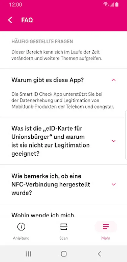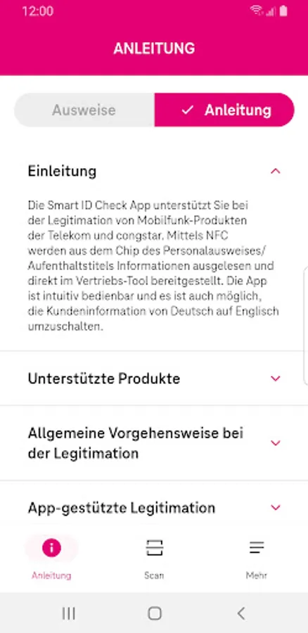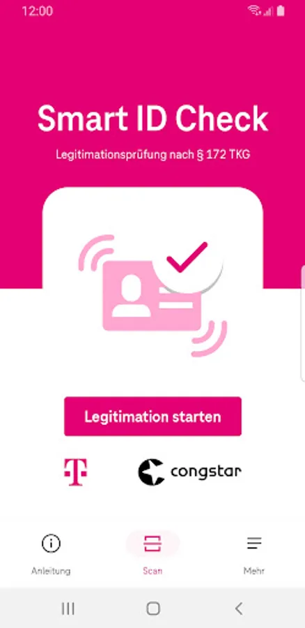 With the "Smart ID Check" app, retailers / shops can quickly and easily read eID identification documents that can be automatically read, such as the German ID card or the electronic residence permit. The data read out in this way is then automatically transmitted to the further processing system for the necessary legitimation of prepaid SIM cards from Telekom Deutschland GmbH & congstar GmbH.