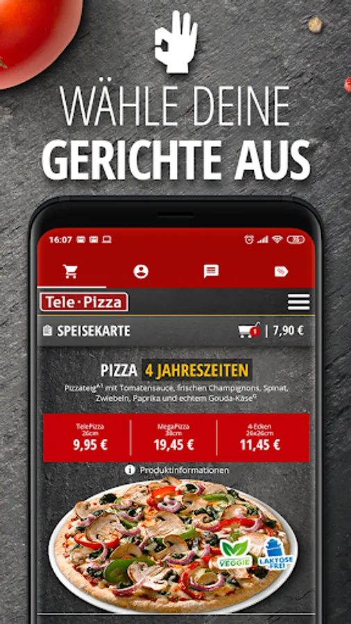 With the brand new Tele-Pizza APP you can combine and order your meals as you like.