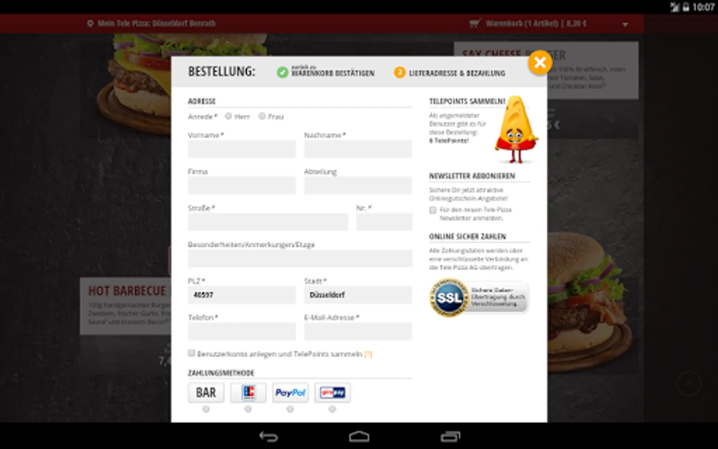 - All online payments are made directly to Tele Pizza AG.
