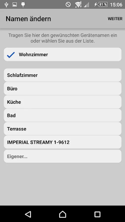 3) If necessary, you can now enter the wireless audio receiver an individual device name or select one of the preset options.
