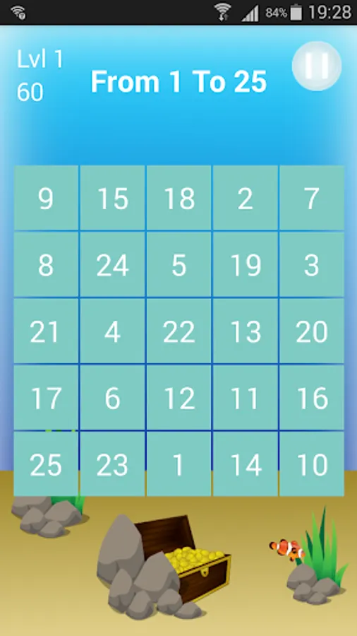 - touch the numbers from 1 to 25 as fast as you can