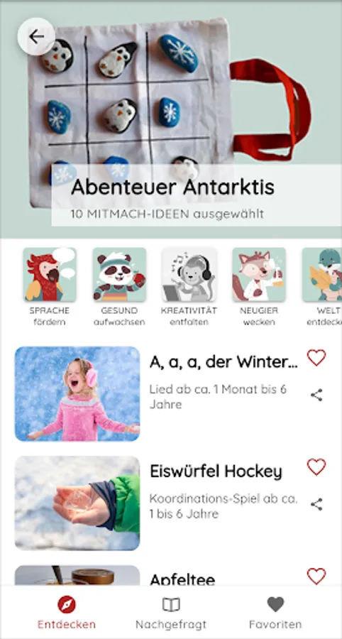 Are you looking for an activity idea for the day? Filter for current songs, games, craft ideas or experiments that you can implement immediately and without any preparatory effort.