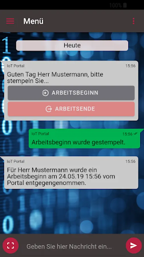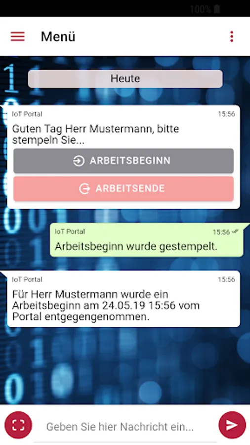 The chat board app provides information and features in the form of an interactive chat. In this way, the user is guided safely and intuitively even through relatively lengthy or very complex processes.