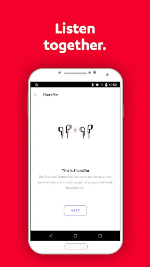 - ShareMe - listen to your music together with friends on two headphones of the same model in sync*.