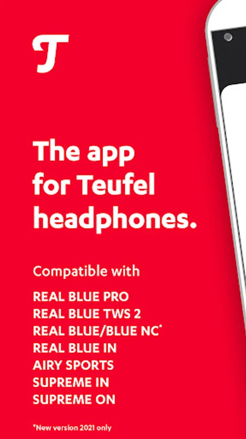 The Teufel Headphones App works with REAL BLUE PRO, REAL BLUE TWS 2, REAL BLUE/BLUE NC (current version only, available from November 2021) SUPREME ON, SUPREME IN, AIRY SPORTS and REAL BLUE IN. Other models, including the older version of the REAL BLUE/BLUE NC (2020) cannot be connected via Headphones App for technical reasons.