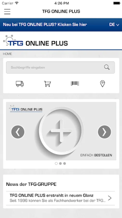 The only requirement to make full use of all the clever Services the app is a valid TFG ONLINEPLUS login. Thus the TFG customer can sign directly and is located in the neighborhood of the mobile portal of TFG GROUP. Here is - clearly structured and functional design - easily the complete service. The user has access to all available products may arrange to be stocks show in its vicinity, call processes, generate ordering tables, order goods for delivery to the construction site or pick at his TFG-house in the region.