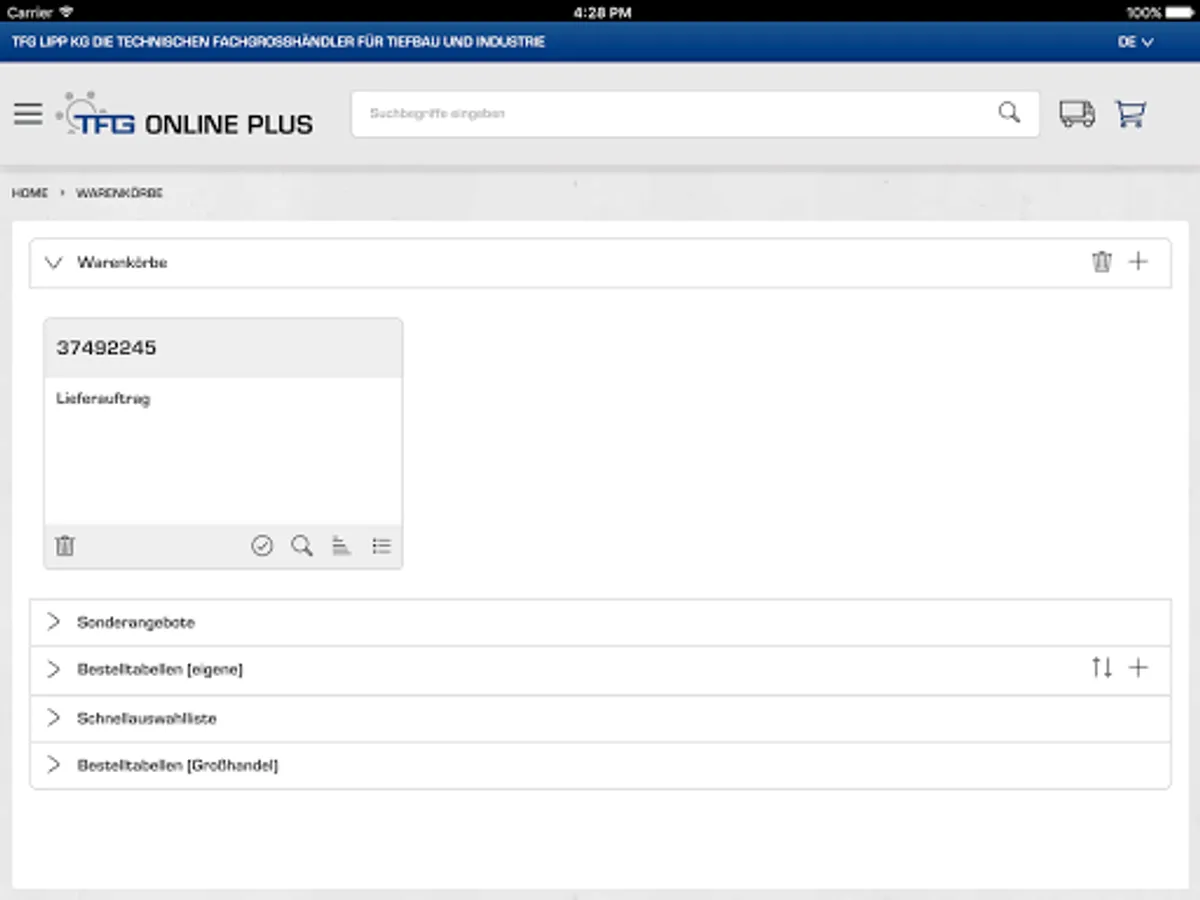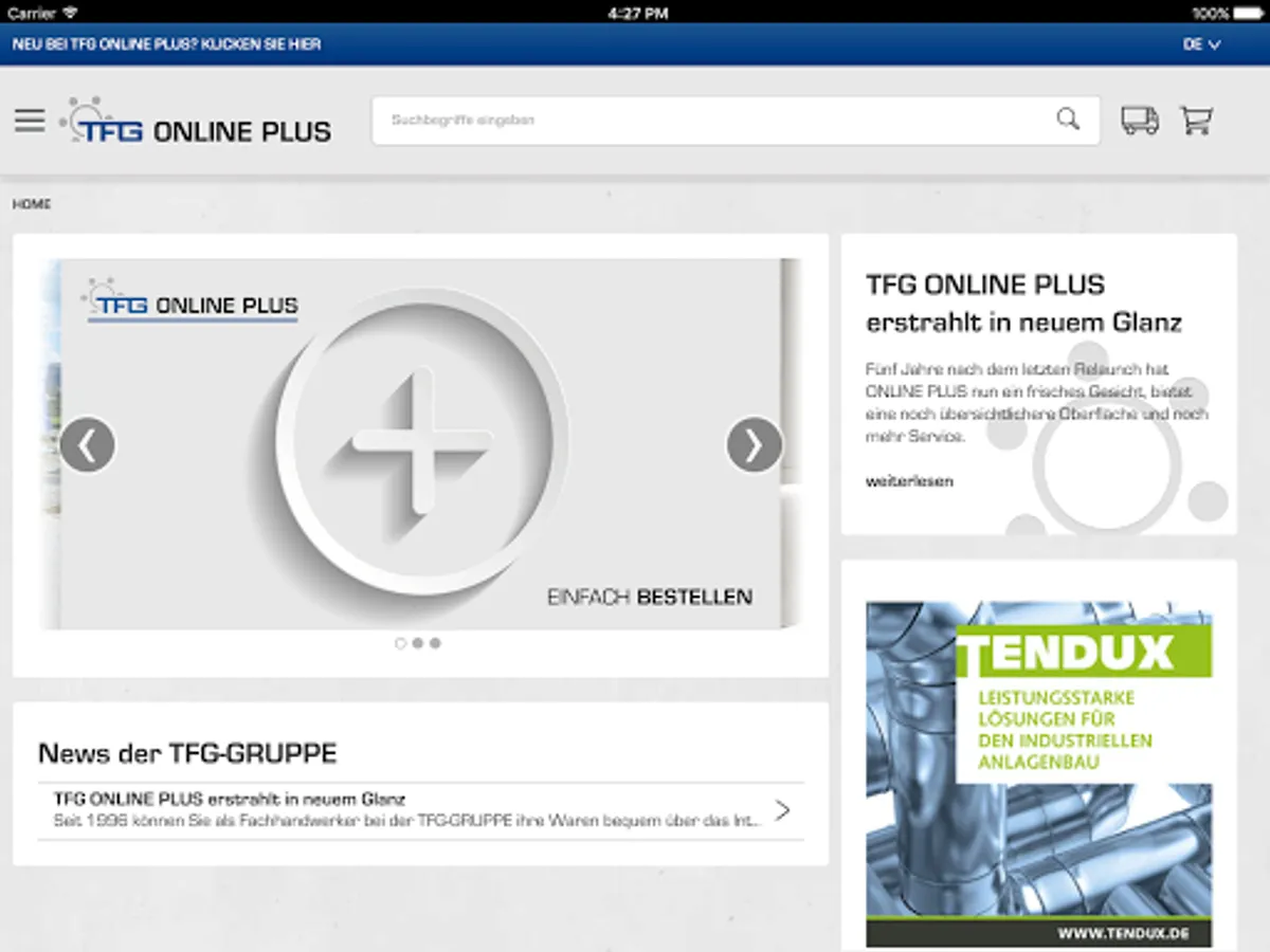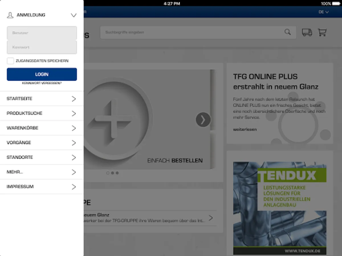 fit with the right app in your pocket for the future: you are a planner, architect or skilled craftsmen? Then use the mobile TFG World now the added value on the go or at the customer. The new version of the mobile portal, the most important of the new TFG ONLINEPLUS Stores functions - the professionals in the field of civil engineering and industrial technology can so localfreely and flexibly use the usual service of the TFG and benefit from many other useful features. Now available: The new version of the TFG app we now offer the option of applying also optimized for iPads and tablets to use with Android operating system. More and more companies use iPad & Co. for use in the customer conversation, for example, to show products or retrieve technical details easily.