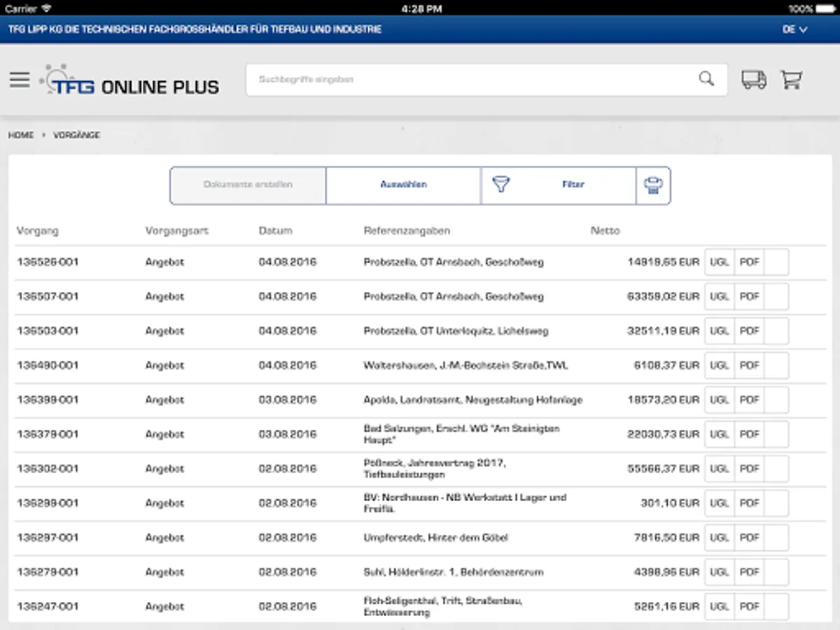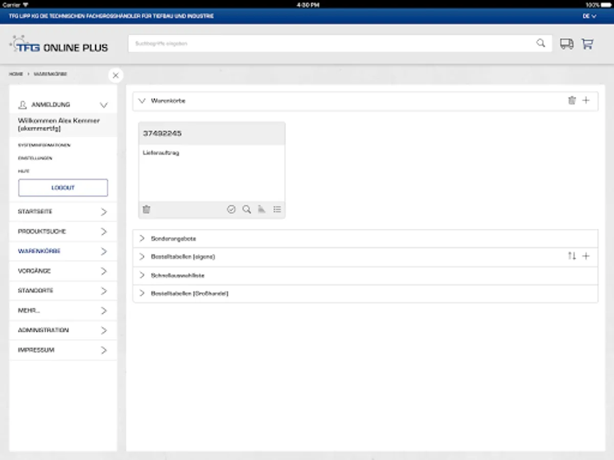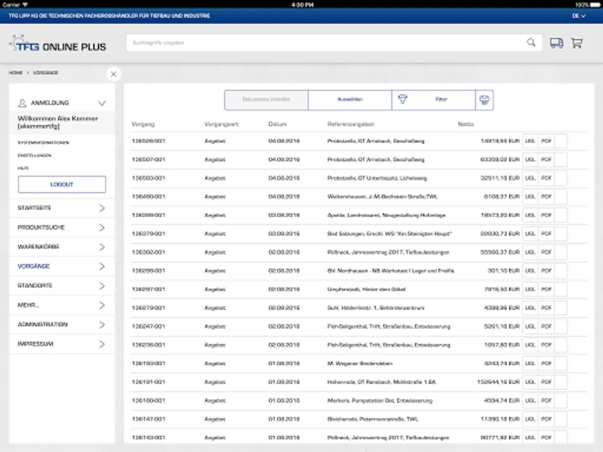fit with the right app in your pocket for the future: you are a planner, architect or skilled craftsmen? Then use the mobile TFG World now the added value on the go or at the customer. The new version of the mobile portal, the most important of the new TFG ONLINEPLUS Stores functions - the professionals in the field of civil engineering and industrial technology can so localfreely and flexibly use the usual service of the TFG and benefit from many other useful features. Now available: The new version of the TFG app we now offer the option of applying also optimized for iPads and tablets to use with Android operating system. More and more companies use iPad & Co. for use in the customer conversation, for example, to show products or retrieve technical details easily.
