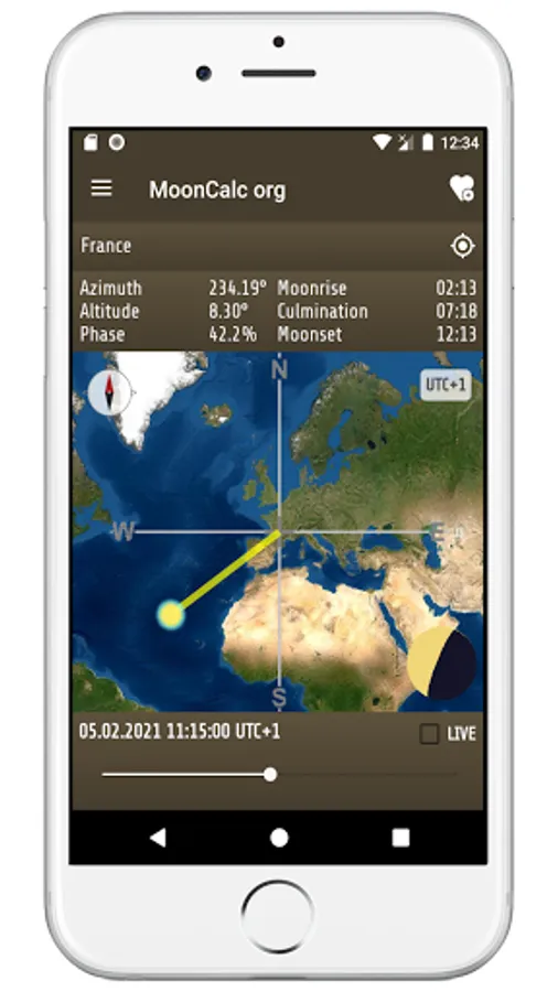 • Detects path of the moon, moonrise, moon culmination, moonset