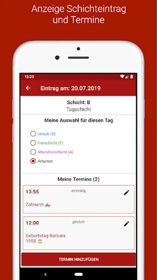 Furthermore, the entry of holidays, free shifts, age-free shifts and other appointments is possible.