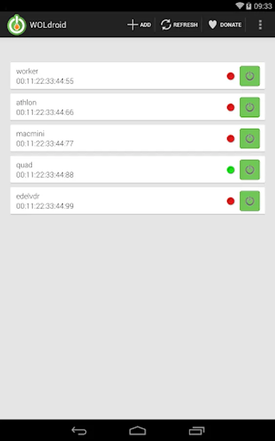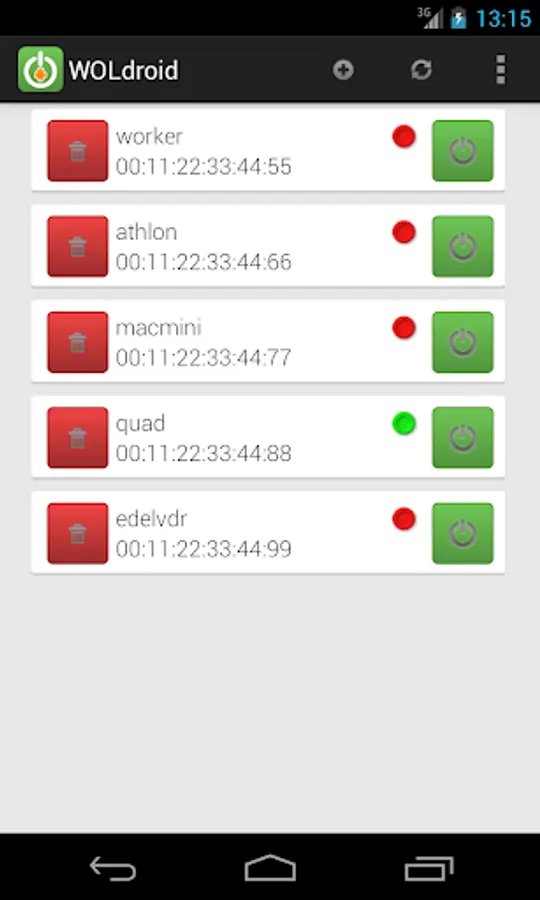 With WOLdroid you can send Wake On LAN (WOL) Packets to a Computer via WLAN. You can add and remove PCs (only MAC Address and Name nedded, no IP Address) to a list and start them by clicking on a button.