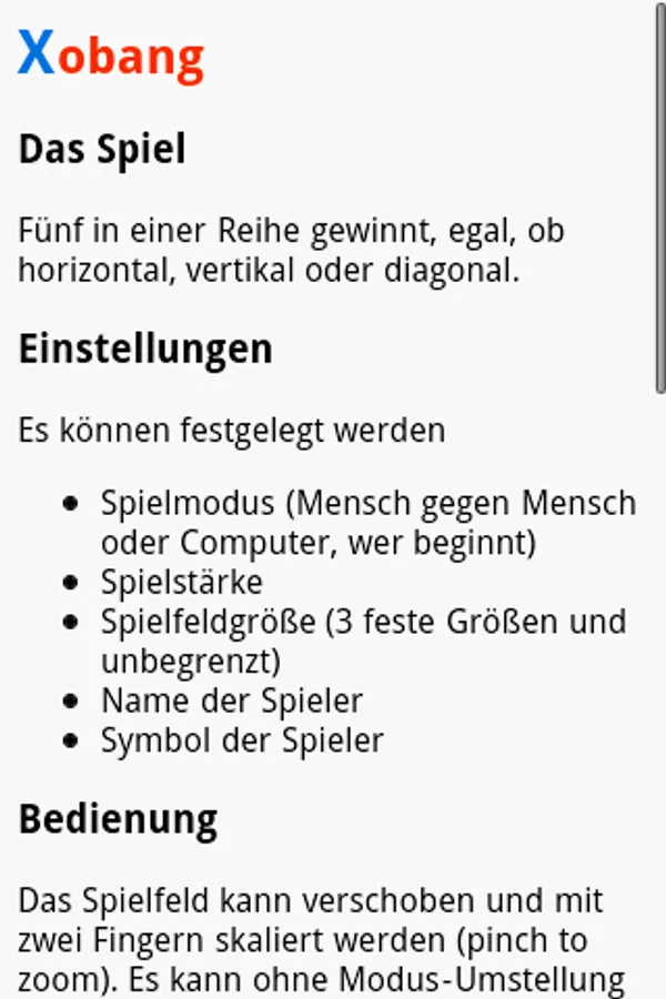 Unlike the other variants in the market, Xobang plays with a very high playing strength und supports unlimited playfield size.