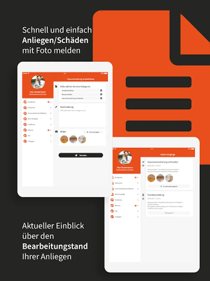 As a tenant or owner, you can report damage or concerns directly with photos via our app. Your inquiries are then available to our employees and can also be forwarded to craft businesses.