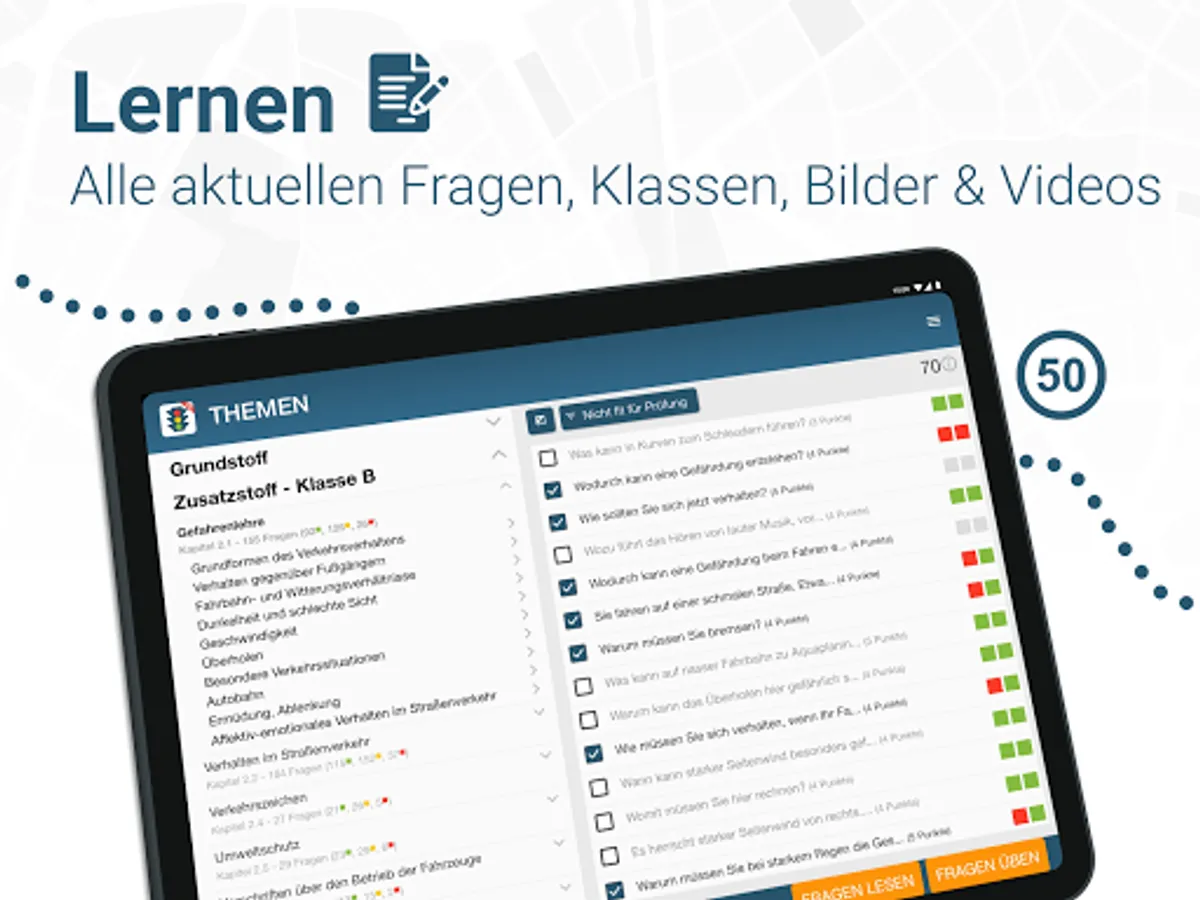 The driving license app is the perfect preparation for the theoretical driving test. The app contains all official German questions from the currently valid catalog of questions from TÜV | DEKRA.