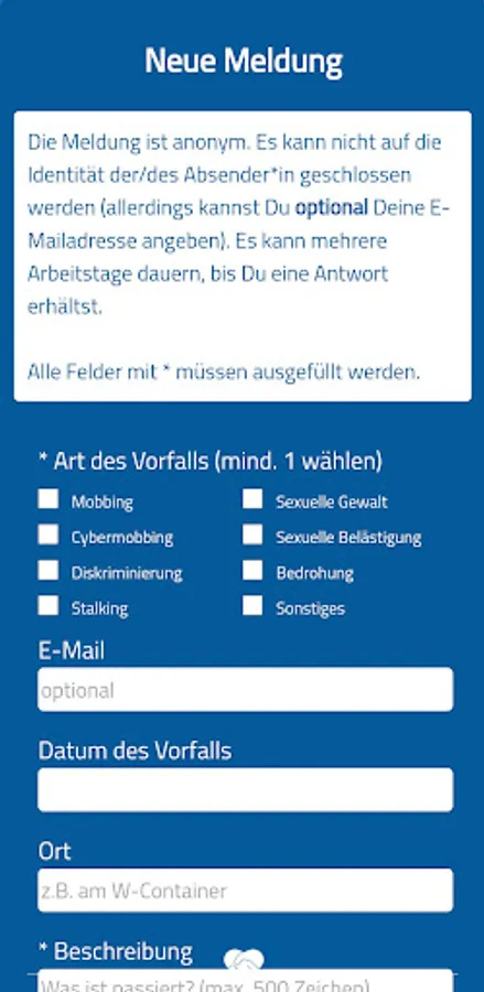 Respect@THI helps all those affected and witnesses to classify what happened and to find the right contact person. The focus is on the completely anonymous and untraceable reporting function, in which messages are recorded and answered individually.