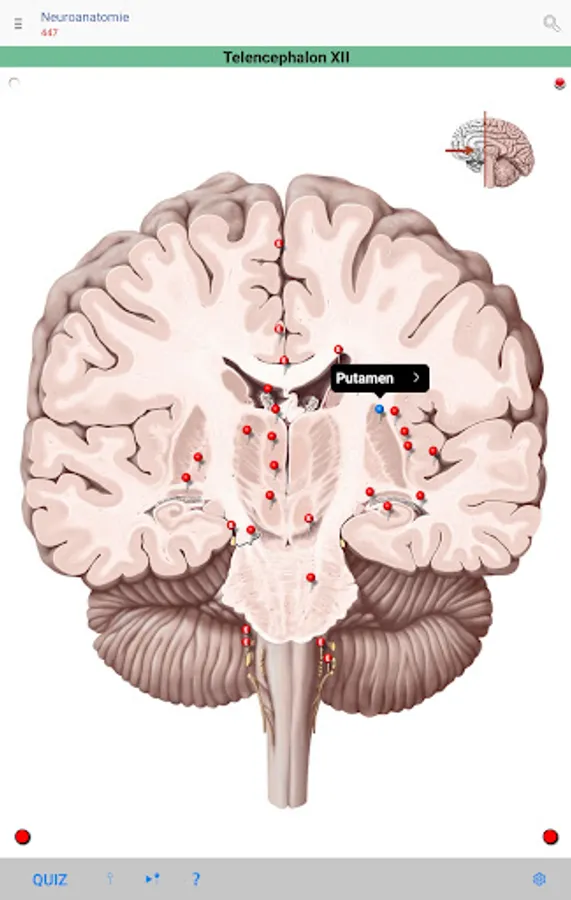 • Quiz: quiz anatomical designations on individual cards or entire groups of cards (e.g. all cards marked in yellow).