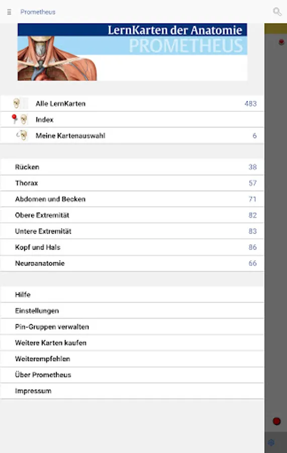 Curious? Then download the PROMETHEUS learning card app for free onto your smartphone or tablet and test selected learning cards from each chapter free of charge (a total of 27 learning cards to test free of charge). You can then buy the complete offer or individual body areas within the app.