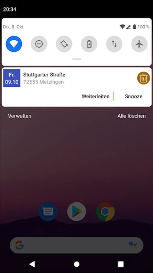 If you are not at home at the time of the reminder - or just don't have the time - direct the reminder e.g. via WhatsApp or use the "Snooze" function to be reminded again later.