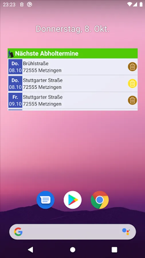 With the widget "Next collection dates" you can keep an eye on the upcoming ones directly on your home screen.
