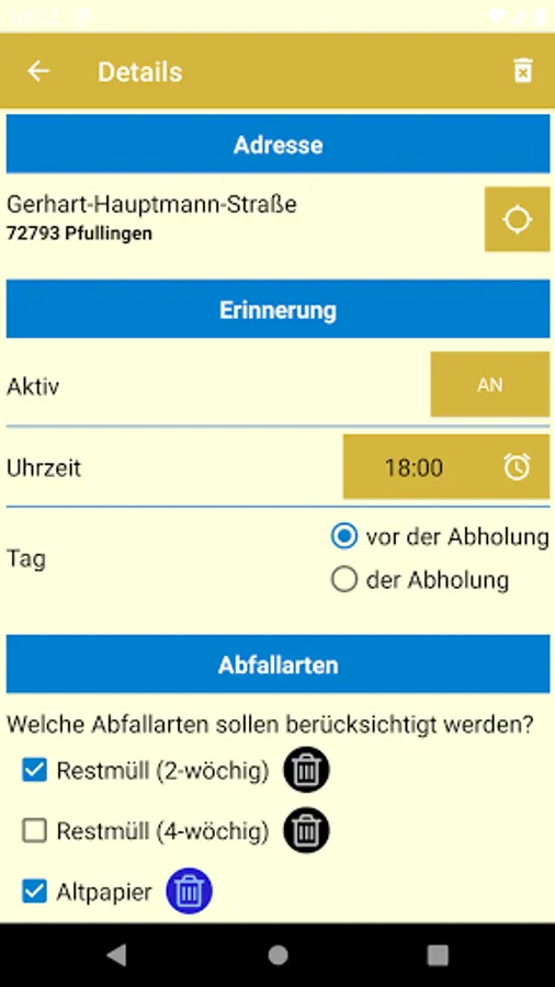 Simply maintain your address (es) and activate the reminders for the types of waste that you have.