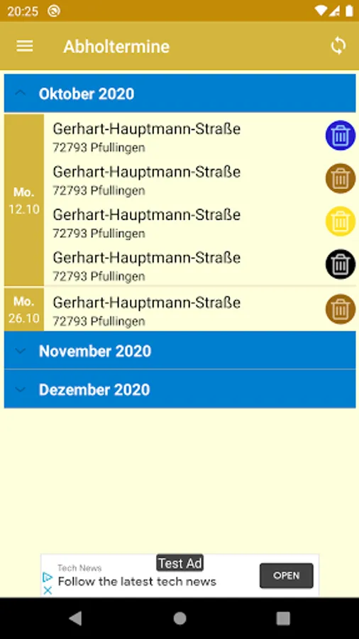 The pick-up dates are automatically updated if synchronization is activated on your device. If not, you can do this manually.