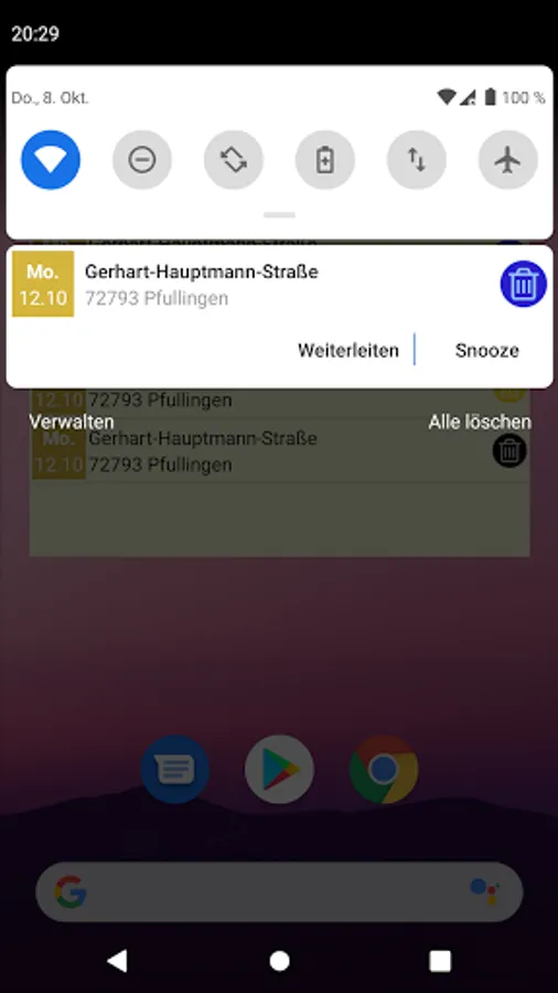 If you are not at home at the time of the reminder - or just don't have the time - direct the reminder e.g. via WhatsApp or use the "Snooze" function to be reminded again later.