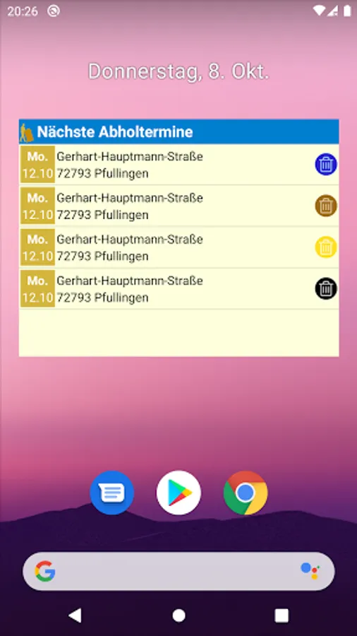 With the widget "Next collection dates" you can keep an eye on the upcoming ones directly on your home screen.