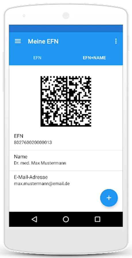 - Create your EFN barcode in the FobiApp. Whether simple EFN barcode or extended barcode with title, first name, last name and email address for more information.